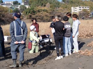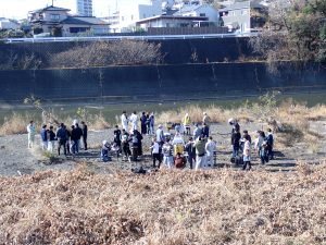 12月18日、白川河川敷において、九州測量専門学校の皆さんをお招きして現場見学会を実施し、ドローンを用いた3次元点群測量など、測量に関する最新技術の紹介を行いました。